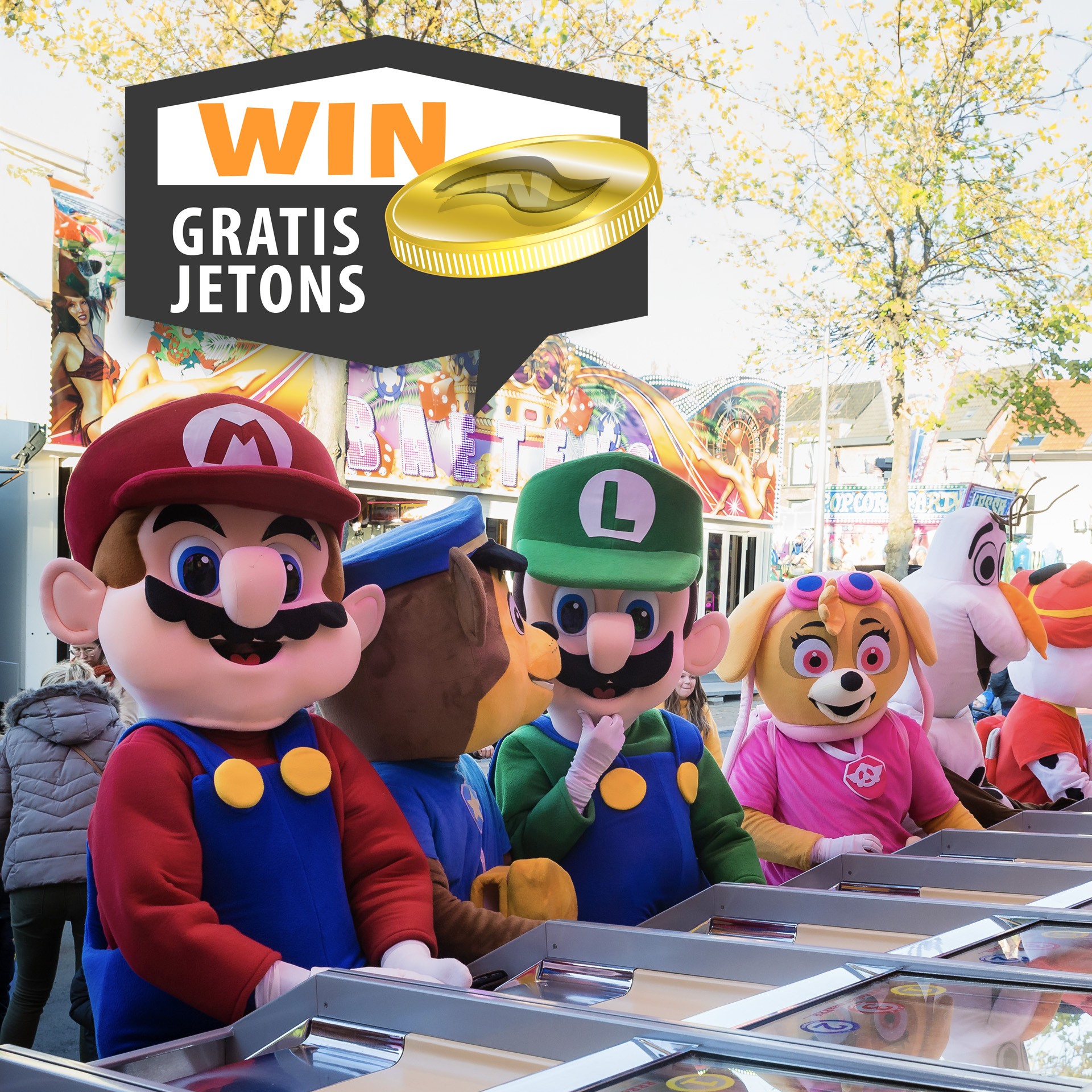 Vandaag is misschien wel jouw geluksdag, want op de kermis kan je kans maken op één van de fantastische jetonpakketten, goed voor gratis toegang tot verschillende attracties. Vanaf 14.30 uur is er ook kinder-animatie en kan je je klaarmaken voor meet & greets met leuke en gekende figuren.